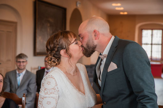 Ganz kurzfristig ergab sich die Begleitung von Christina&Thomas im Schloss Voigtsberg. Das Besondere an dieser Hochzeit - Christina war schwanger und sah in ihrem Babybauch wunderschön aus.