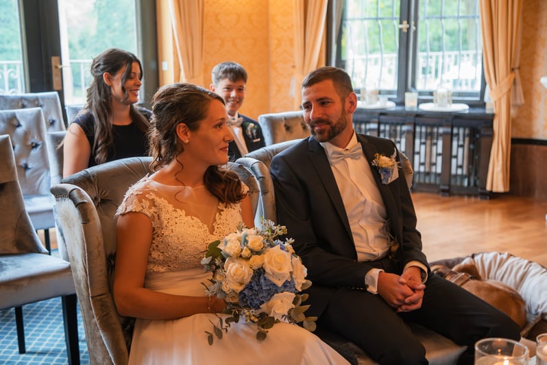 Im Anschluss an ein Gläschen Sekt gings raus in das recht frische Herbstwetter. Kurzzeitig zeigte sich sogar mal die Sonne und so konnten wir ganz tolle Erinnerungen schaffen. Bereits am Nachmittag hatte das Brautpaar erste Eindrücke von mir bekommen, damit jetzt auch die Familie von dem großen Ereignis erfahren durfte.