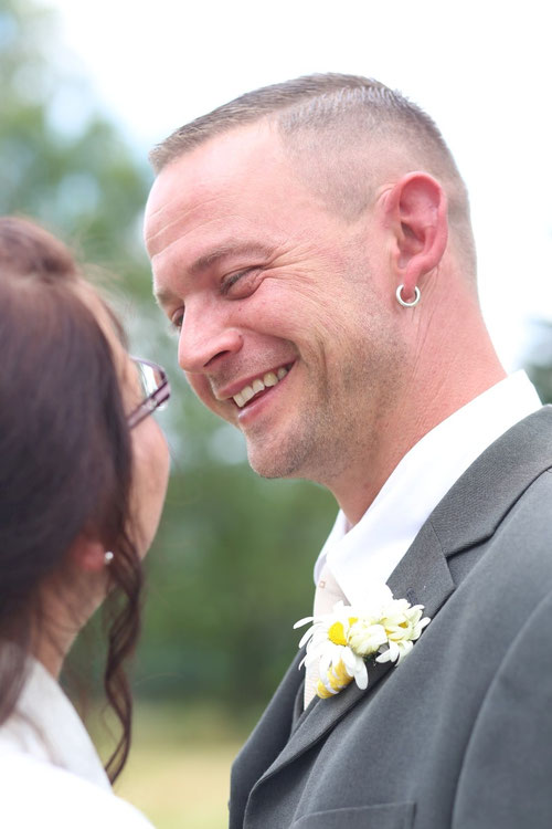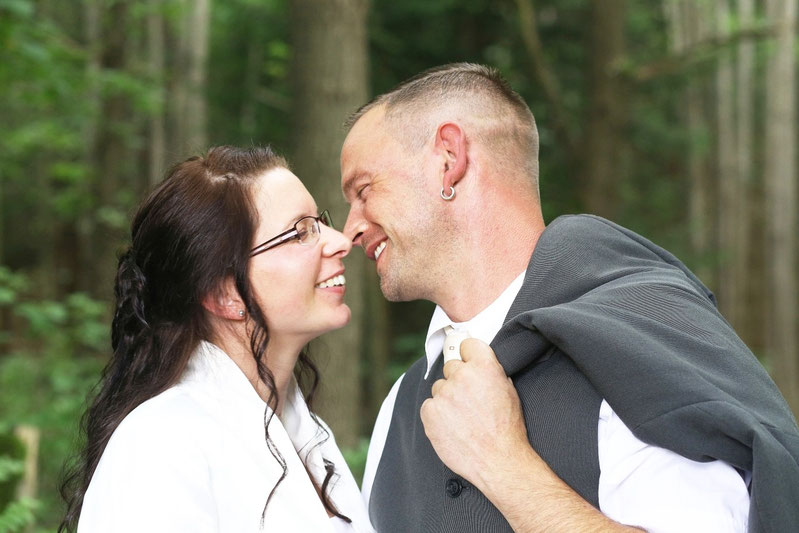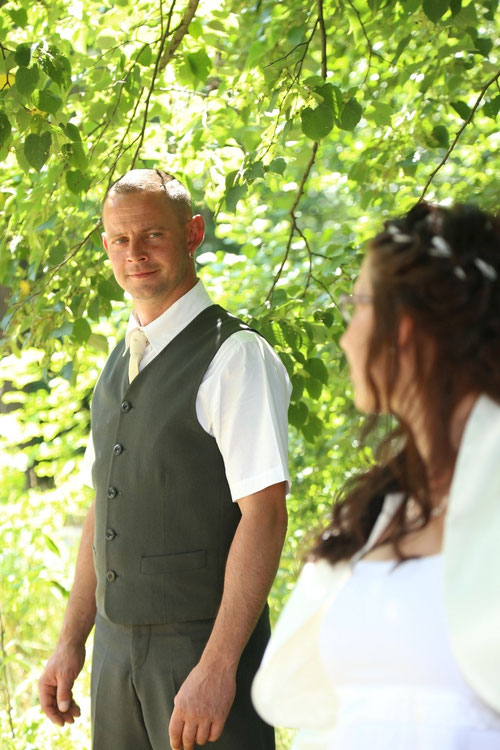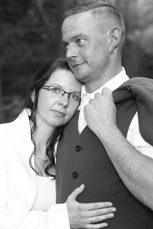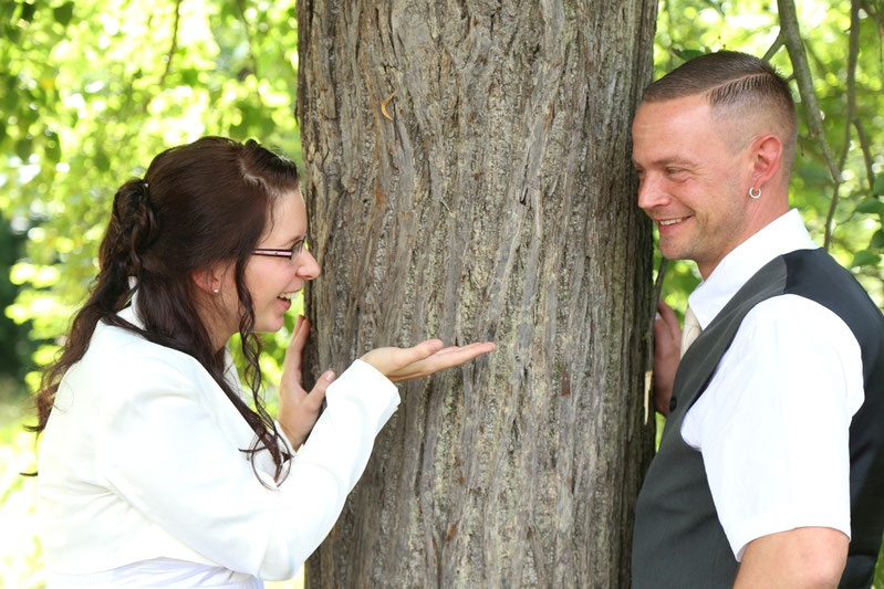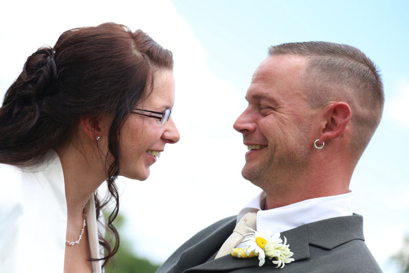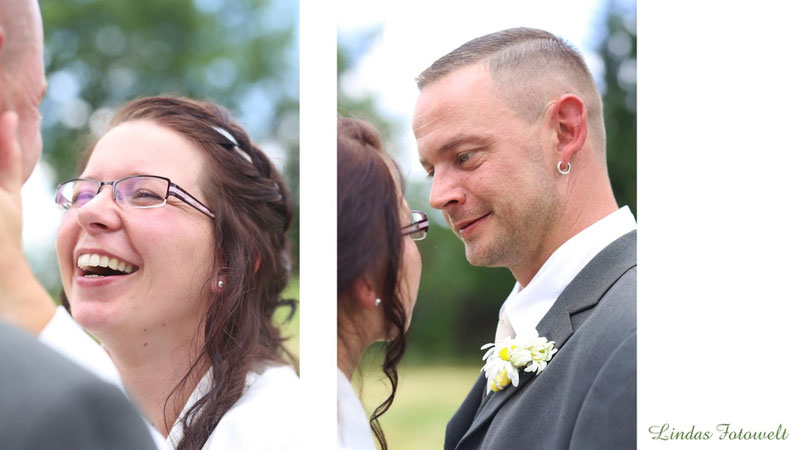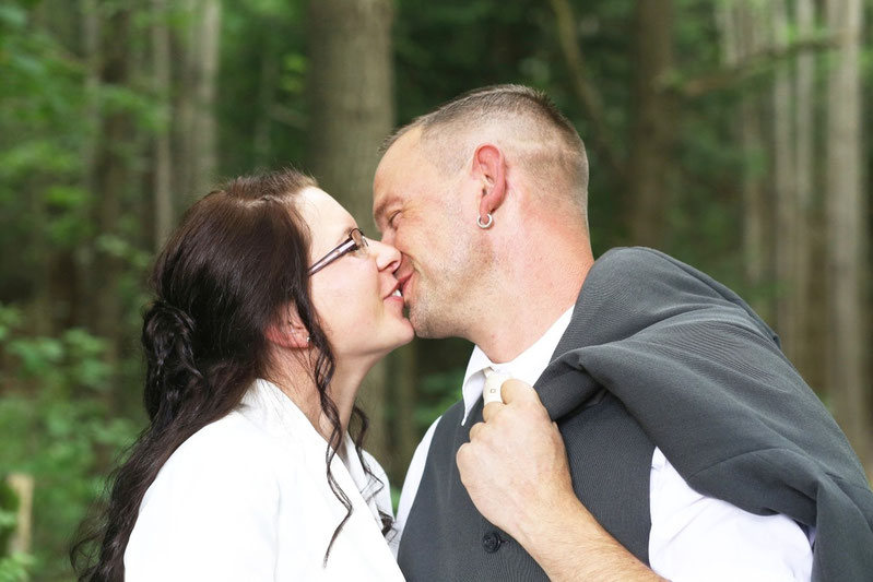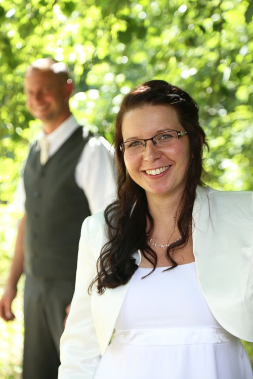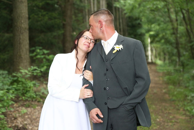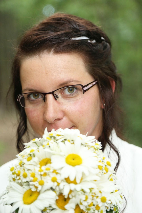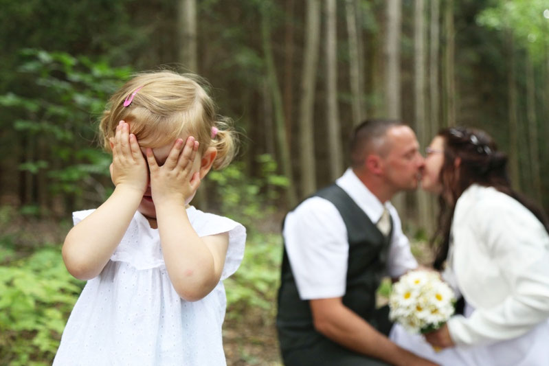 Am 14. Juli 2014 traf ich mich mit Ninette, Rico und der süßen kleinen Edda. Die drei hatten gerade eine Trauung im engsten Kreis der Familie hinter sich und waren nun für das kleine Brautpaarshooting bereit. Da die anschließende Feier im Forsthaus Glauchau (wunderschön am Wald gelegen) stattfand, nutzten wir dies natürlich direkt für unsere Fotos. Der Brautstrauß komplett aus weißen "großen" Gänseblümchen - sehr hübsch und mal was Anderes. Und sogar die kleine Edda hatte ihren eigenen Strauß - zuckersüß sag ich euch.