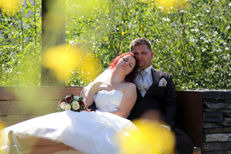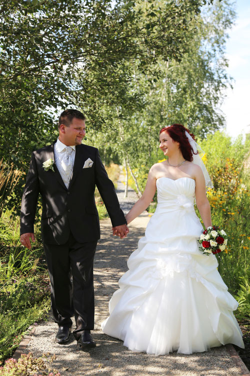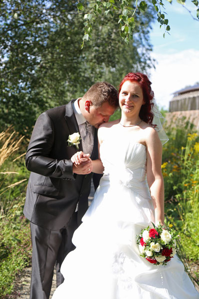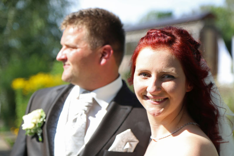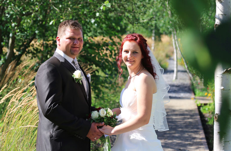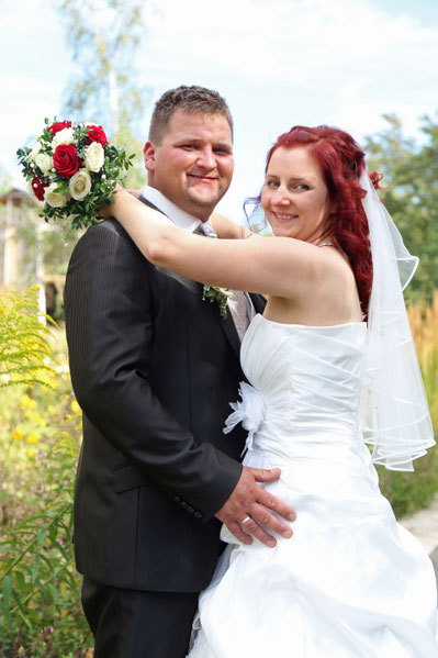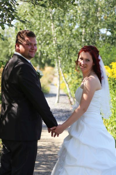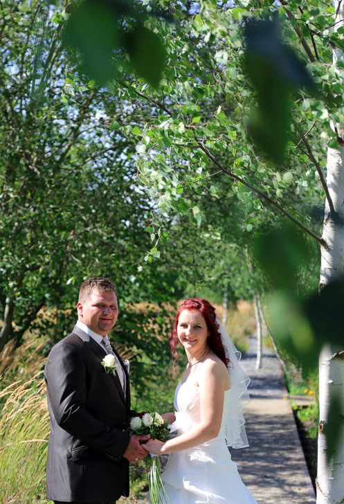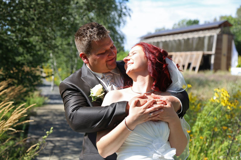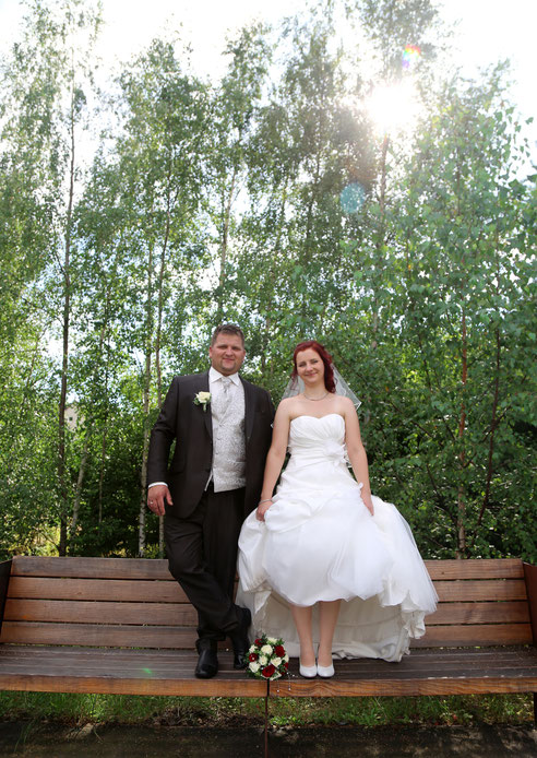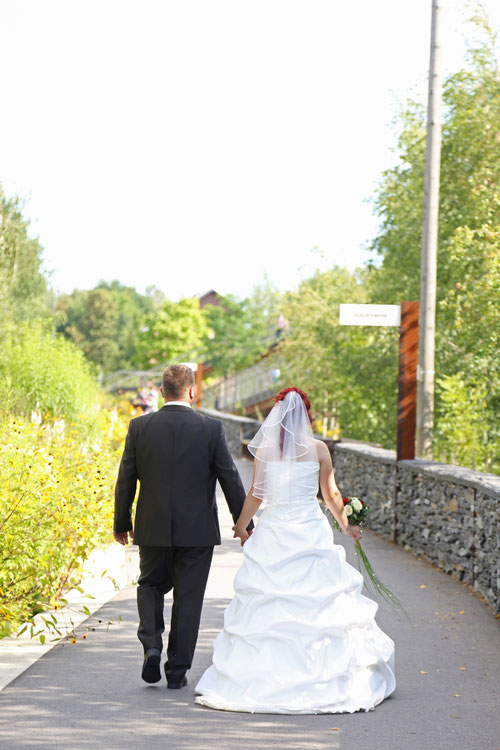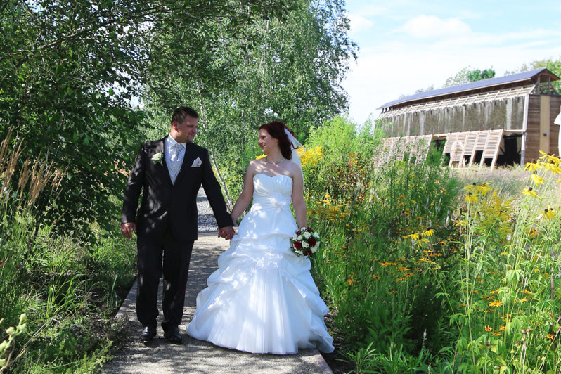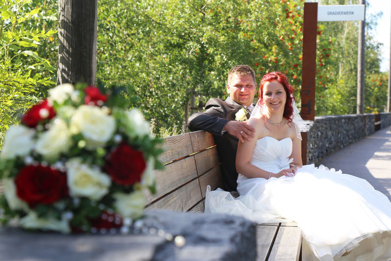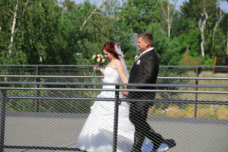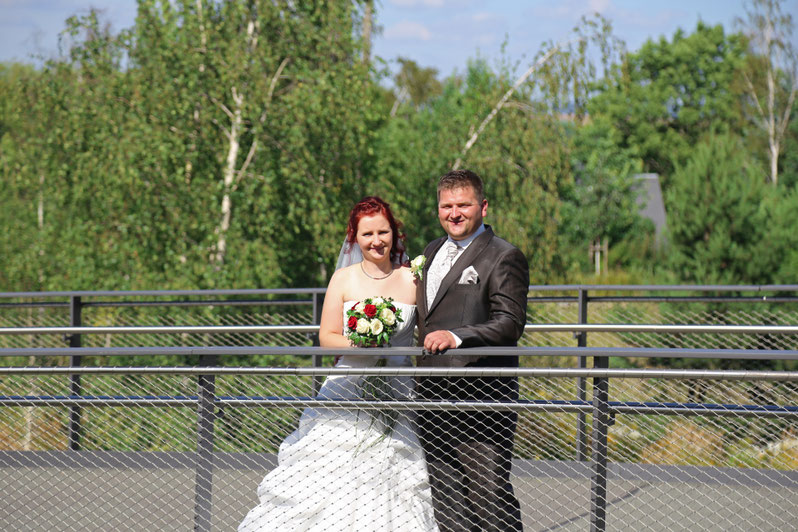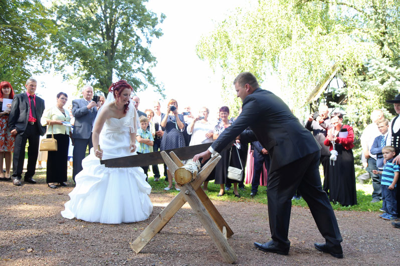 Nach der Trauung mit tollen Gesangseinlagen, wartete bereits das Baumstammsägen auf das Brautpaar und dann starteten wir mit den Gruppenfotos. Für unser Brautpaarshooting gings in das ehemalige Landesgartenschaugelände nach Oelsnitz/Erzgeb.