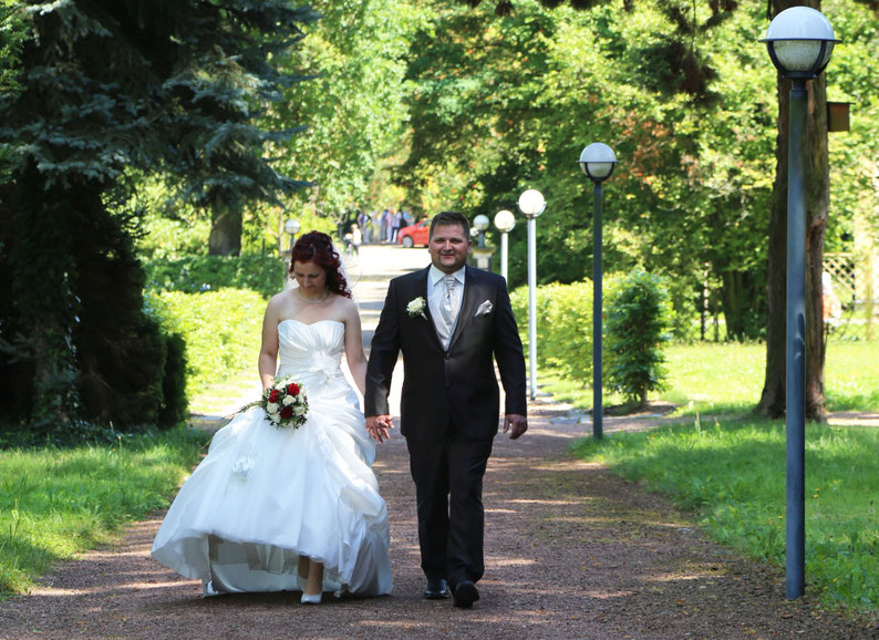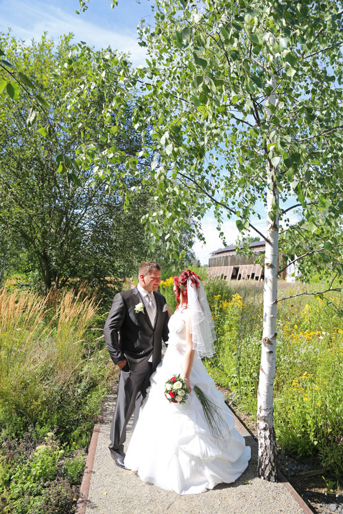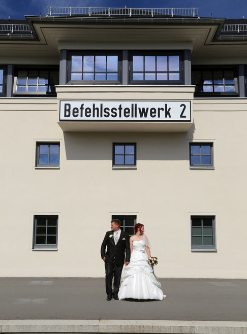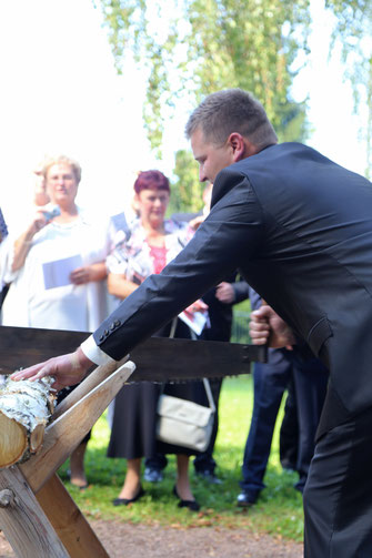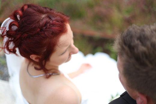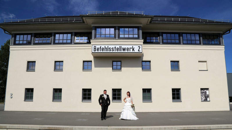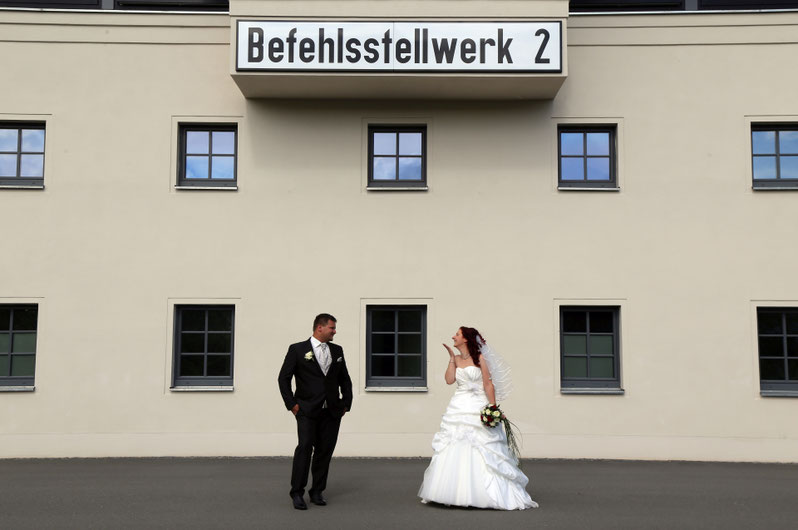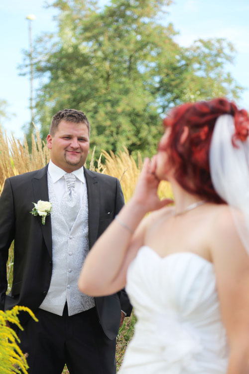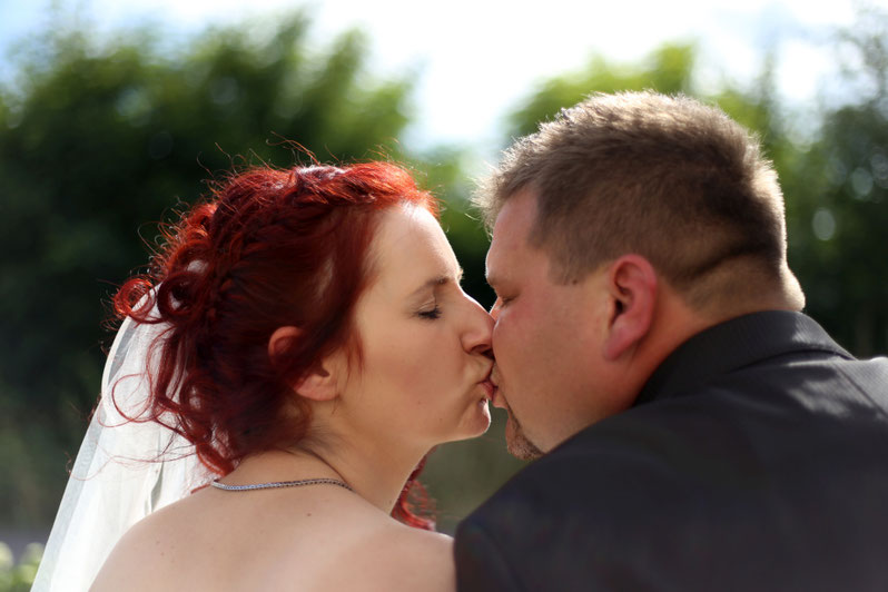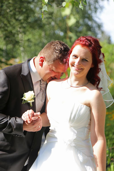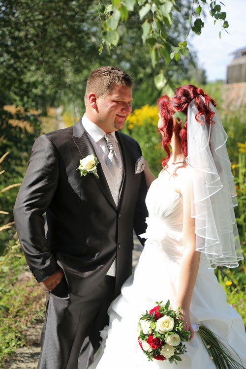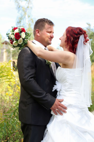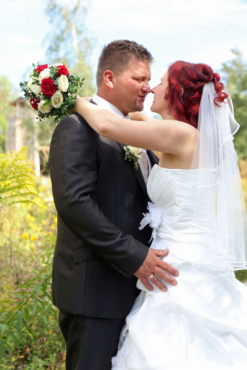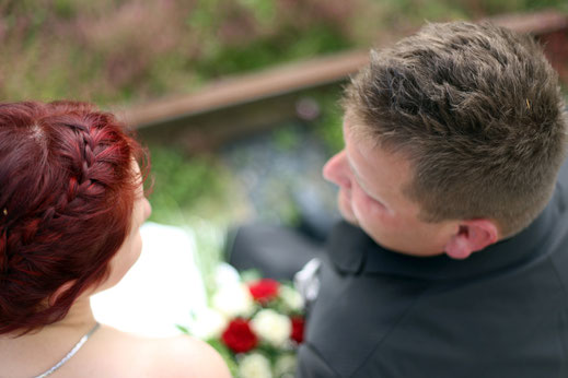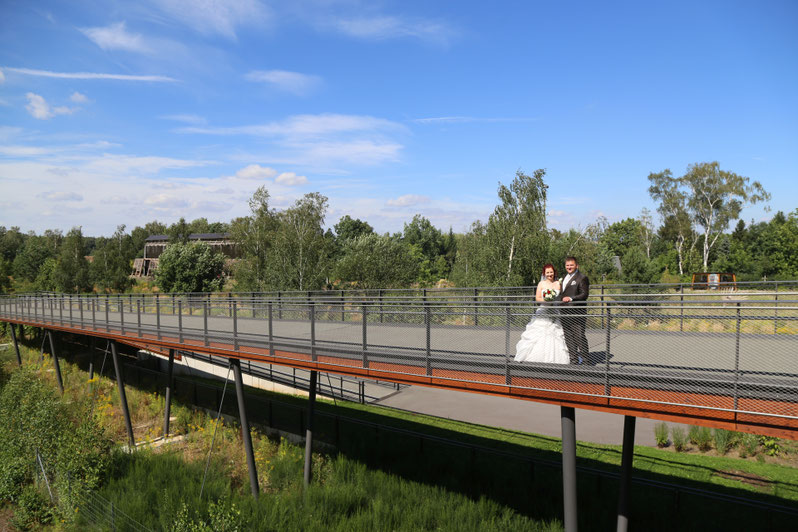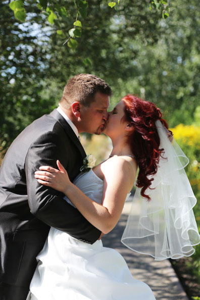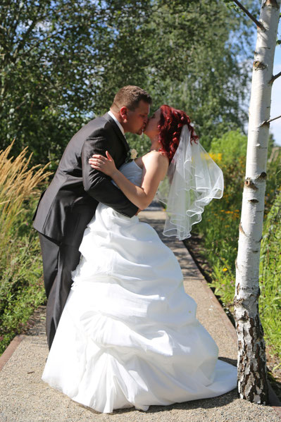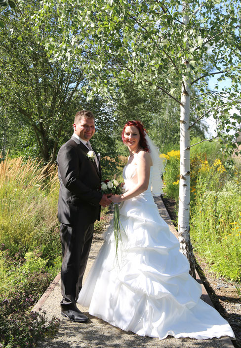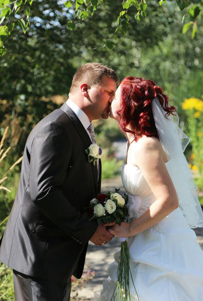 Nach der Trauung mit tollen Gesangseinlagen, wartete bereits das Baumstammsägen auf das Brautpaar und dann starteten wir mit den Gruppenfotos. Für unser Brautpaarshooting gings in das ehemalige Landesgartenschaugelände nach Oelsnitz/Erzgeb.
