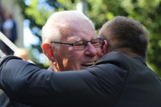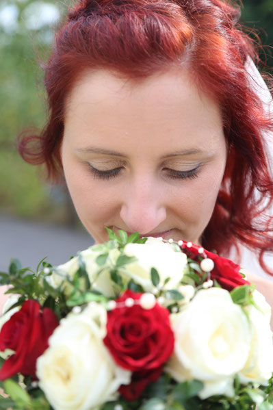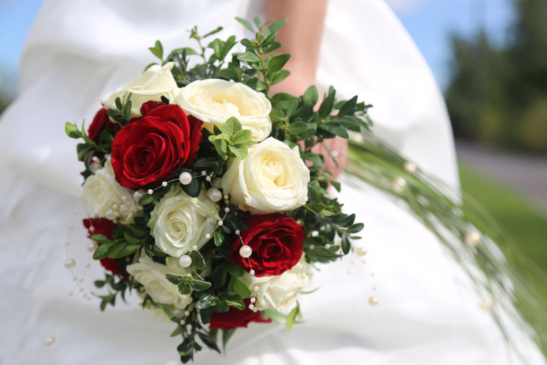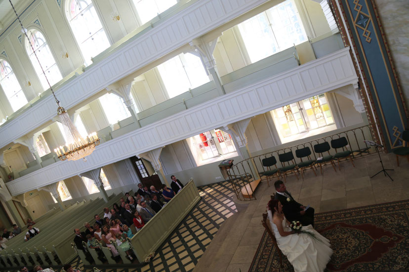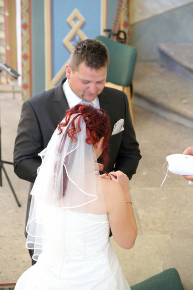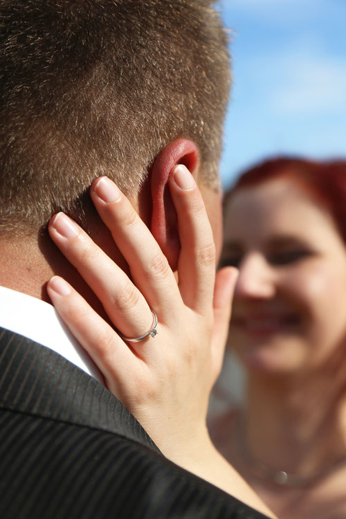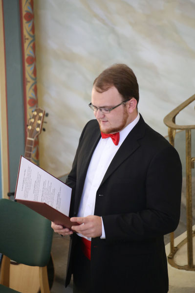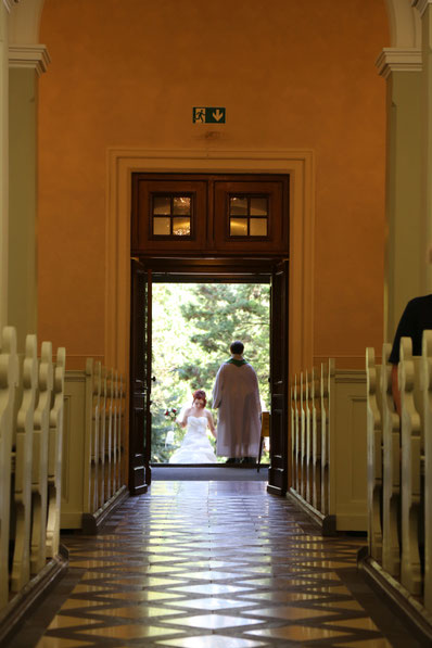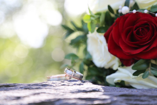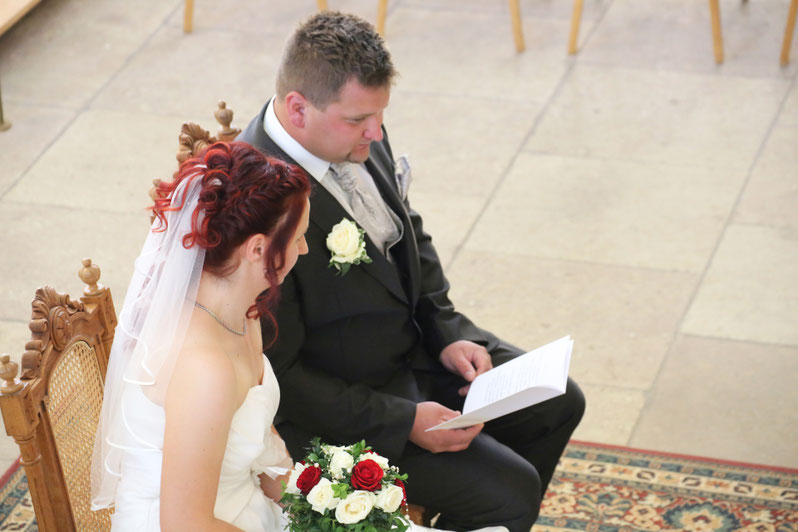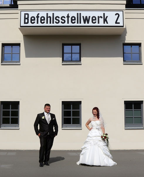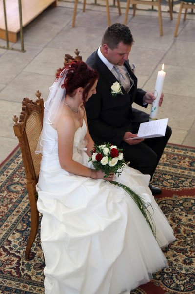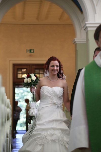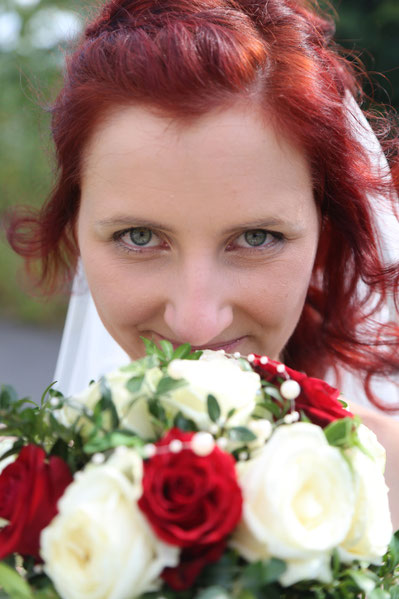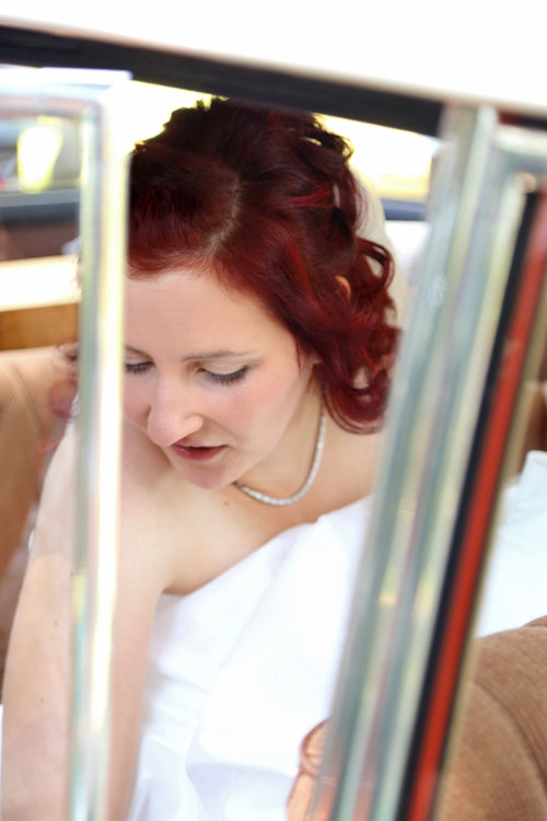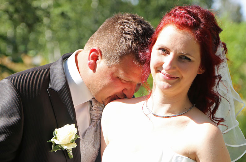 Am 13.08.2022 wartete ich pünktlich 14:30 Uhr vor der Marienkirche in Gersdorf auf mein Brautpaar. Das Wetter war einfach perfekt: die Sonne strahlte bis über beide Ohren, die Vögel zwitscherten am blauen Himmel und dann kam auch schon das Brautpaar mit dem bisher wohl coolsten Brautauto vorgefahren - einem Wartburg in edlem rot/weiß - sehr schick.